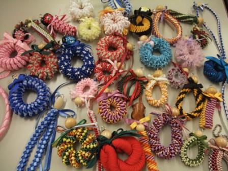 用意しました。 鈎針で編むもの、 手で編むもの、 針と糸で縫っていくもの、とそれぞれ皆さんの好みのもので作ってもらえるようにしています。